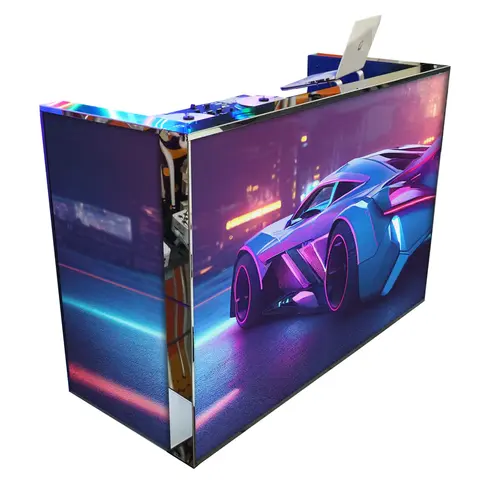 Bring the beat and the visuals with our next-level LED DJ booth—fully built from dynamic LED panels that pulse, glow, and sync to every beat. From custom colors and graphics to logos and messages, it’s fully customizable to match your vibe or brand. This isn’t just where the DJ plays—it’s a high-energy centerpiece that steals the spotlight at weddings, parties, and live events. Get ready to turn the booth into part of the show!”